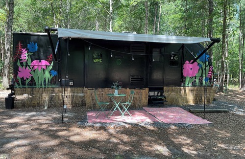 Enjoy the lovely setting of this romantic spot in nature. Welcome to storms passing. She is located on 2.5acres and has her own space. She was alchemized during a time of turmoil and healing. She was created to return peace, relaxation and feminity to a soul. She is located 3.5 miles from Congaree National Park and is fully loaded. She has a bedroom with a queen bed and a large TV with a Roku stick. A full kitchen with an island and a living room with a couch that folds over into a queen bed. This quaint property offers all the essentials for a serene stay. With WiFi and AC available, guests can relax and unwind in this cozy space.