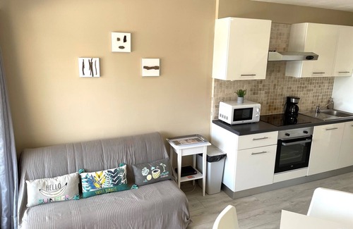 Nice air-conditioned studio, new on the first floor which can accommodate up to 4 people (25 m2 + terrace) on the port of Hyères less than 100 m from the port, its shops and restaurants ... It has 1 bed 140 and a sofa bed 140, secure access in the residence (code), a terrace and all basic equipment as well as free wifi. Access to the port and the beaches is direct by foot. Bus line (train station, city of Hyères, shuttle to the Golden Islands ...) next to the residence ....