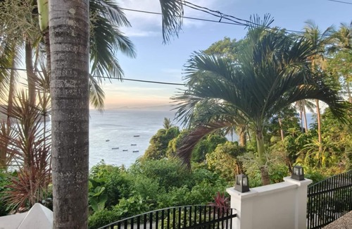 Relax and take in the spectacular ocean views from your large veranda. Looking out over Verde Island passage one of the top diving destinations in the Philippines .Access to apartment is up 6 steps to the veranda, entrance is through a sliding double door. Queen size bed 48inch tv ,kitchenette with single burner hob and all utensils supplied to make your special meal .separate private shower room and walk in closet. outside there is a shared swimming pool self service bar and BBQ area, you can also enjoy the views from our 2 roof decks and have a game of billiards and relax .