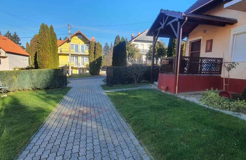 The studio is located in an apartment house built in 2005, was renovated in 2021 and is furnished in a modern style. The property is located on the outskirts. Also due to its quiet and sunny location the domicile is popular. Available for shared use: barbecue facilities, terrace and garden furniture.LocationZalakaros. The studio is located on a 200 sqm enclosed garden plot with meadow, bordered by a fence. The landlord lives permanently in a separate building on the property. Access is via a side road (asphalted). Parking (for 1 car) is available on the property. SpecialFacilities: internet access (WLAN). TV reception takes place via electric wire. Channels in different languages. German, English, French. Leisuretable tennis. Dogsallowed, EUR 13.00/pet per day. DistancesShopping 400 m, restaurant 1000 m. airport in Sármelék 10 km. Zalakaros: thermal bath, indoor swimming pool, sauna, cinema, bank each 1500 m. pharmacy 400 m. railway station in Zalakomár 10 km. Children's playground 1500 m. DivisionStudio, 1 floor, 1 room, 25 sqm, in total 3 beds (including 1 cot). RoomThe entrance to your studio leads directly into the living & bedroom. Living/bedroom (20 sqm) with 1 double bed, 1 cot, TV and dining area (3 seats). Cooking nook in the living & bedroom (3 sqm) with TV, electric stove (2 plates), fridge (120 l, icebox), microwave, coffee machine, toaster and access to the balcony. Bathroom (3 sqm) with shower, 1 washbasin and WC. Terms of lease and pricesIncluded in the priceinternet access, parking place, electricity, gas, water, final cleaning, bed linen, Wireless Internet access. Side costs-Additionally(Payable when booking)/additonal fee for short-term stays (less than 3 nights) obligatory 20% per booking per stay.Costs on the spot:/Obligatory:local tax by local tariff.On request:baby cot (please order at booking) 10 € per bed per day.Deposit:EUR 100,-/object