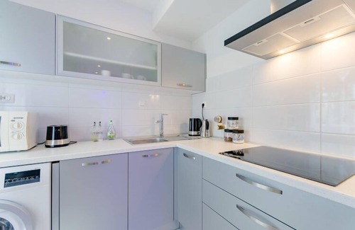 This beautiful studio with terrace is located in city of Split, only 10 minutes from the city center and famous promenade Riva Split where you can enjoy beautiful sea view, magnificent sunsets and experience true Dalmatian culture and history. Studio features private entrance and terrace with outdoor furniture. Luggage storage is possible prior to check in and after check out. Please note***Only children older then two years are welcome at the property. All children under two years can not be accommodated at the property.*** Studio features free wifi, air condition, flat screen TV and cable TV, so as kitchen equipped with stove, oven, dishes, water kettle, toaster, microwave, refrigerator, dishwasher and dining area and closet, as well as bathroom with washing machine, hair dryer and cleansers. Guests can enjoy their staying on terrace with outdoor furniture. Private entrance is provided. This studio apartment can comfortably accommodate up to 2 persons. Due to property's excellent position, situated just 50 meters from the supermarket, bank and pharmacy, so as 60 meters from bus stop, guests can find everything needed for everyday life during their vacation, in a vicinity of the property. Restaurant is only 200 meters away, while post office is 300 meters distant from the property. The beach can be found in 850 meters away, whilst gas station is 2 km distant from the property. Split airport is 21.5 km away while Ferry port and Main bus terminal are 4 km away.