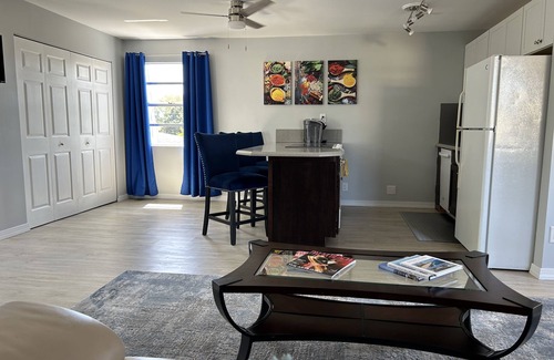 Newly renovated sunny studio on a second floor, separate house in a back yard. Relax in this calm, stylish and spacious space. Enjoy movies, all type restaurants, public transportation. Minutes away from all major beaches, such as Singer Island, Juno Beach and Jupiter Beach. Just few blocks from Kelsey Park. 15 minutes from Palm Beach International Airport.