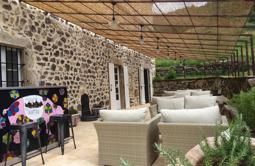 Moulin A is a former coaching inn and stagecoach ideally located at the foot of the Col de l'Escrinet between Privas and Aubenas. Reopened in 2016 after a complete and bold renovation, it now offers several services such as bar, table d'hôte and bed and breakfast.