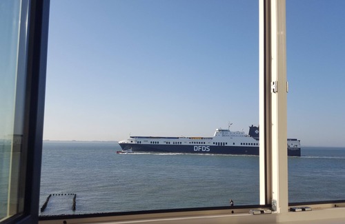 Beautiful, cozy and new studio located in the historic city of Vlissingen (Zeeland, Walcheren)! Beautiful frontal sea view. From the bank (and your bed) you can see the boats passing by. The studio is south facing situated on the sunny boulevard of Vlissingen. Nowhere in Europe the sea ships sail so close to the coast!