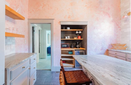 Cook up a feast in this spacious, fully stocked kitchen. With top-of-the-line appliances, ample marble counter space, and all the utensils you need, ideal for preparing anything from a quick breakfast to a gourmet dinner. Enjoy your morning coffee on the private patio and walk to a number of fantastic restaurants, bars, coffee, shops, and even bookstores!