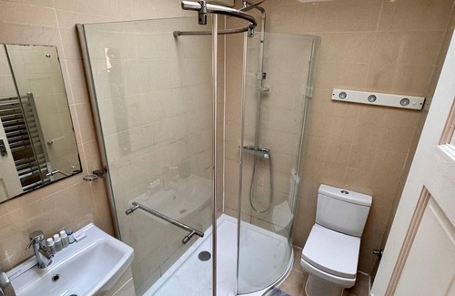 The master bedroom features an ensuite bathroom, complete with modern fixtures, sleek showers, and plenty of space for your toiletries. This is your private retreat within the house, offering comfort and peace after a day of exploring London.