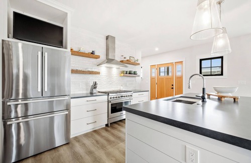 KPort Concierge is thrilled to invite you to discover your perfect seaside getaway in Kennebunk, Maine, just steps from the beautiful Gooch's Beach. Recently constructed with exquisite high-end finishes, this spacious home features a thoughtful layout tailored for friends and families to create unforgettable memories together. The airy open-concept design seamlessly integrates the kitchen, dining area, and living room, bathed in natural light from large windows that invite the refreshing sea breeze inside. For quieter moments, the separate first-floor living area offers a cozy retreat.