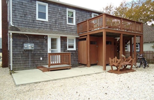 Additional amenities include parking for 2 vehicles, high-speed internet, an outside shower, and beach badges for 4 guests. This property is furnished with all the comforts of home, including a stove, full-size refrigerator, oven, and kitchen essentials such as pots, pans, silverware, and cooking utensils.