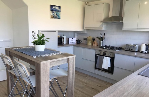 Large south facing living room & kitchen, both with fabulous sea views