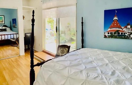 20 minutes to the beach. Hiking across street. 1/2 mile to trolly. Beautiful neighborhood. Private patio. Quiet. Lovely room.