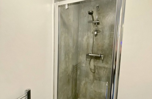 Master bedroom with Super King bed, fitted wardrobes and full length windows overlooking the lake. Master en-suite shower room with a double walk in shower.