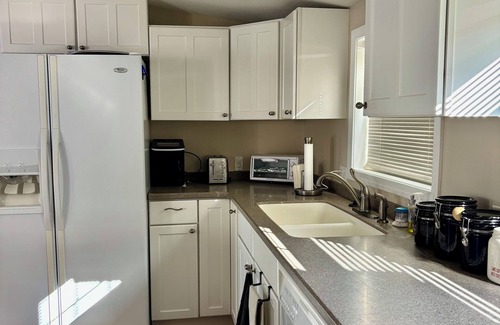 The kitchen has all the appliances and cookware to make family meals. A Coffee/Tea Bar is included. The counter has 3 bar stools and a dining table with a built in leaf/sleeve underneath which expands to seat 10 using additional chairs in the pantry.