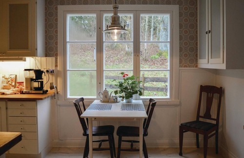 Homey and very tastefully renovated cottage with beautiful wallpaper and flooring. When you enter, you are immediately welcomed by a cozy atmosphere. Immediately you will see the wonderfully furnished kitchen with plenty of space for cooking. The old stove is also nice to look at, although you can not cook on it. From the second living room you come to the basement with sauna and bathtub. The living room on the upper floor with a fireplace and the adjoining bedroom offer a beautiful view of the countryside. The contemporary furnished house is also surrounded by beautiful nature, close to fishing lakes and the 15th century Torpa Stenhus Castle. 30 km distance to Komosse Nature Reserve, with rich fauna and flora and beautiful trails. Ulicehamns Skigibiet or Isaberg are beautiful winter sports areas. In Gällsted you will find outlets and restaurants.
