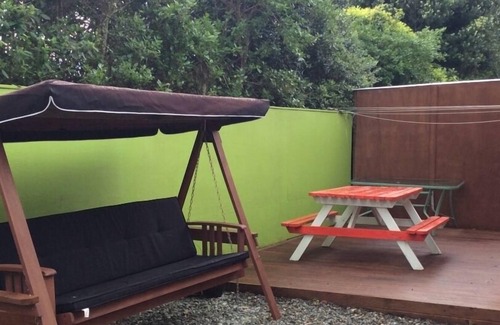 Our lovely family Bach is situated on a large section plenty of room for family games, it is fully fenced very sheltered and even though the Tavern is next door it is very private and quiet with a large hedge. We have large deck areas, relaxing furniture to enjoy barbecues and socialising. The is a large covered in area if raining. You can walk to Pororari RIver where you can canoe, whitebait or enjoy the beach. It is ten minute walk to the pancake rocks or 5 minute drive to the Truman track walk one of our favourites.