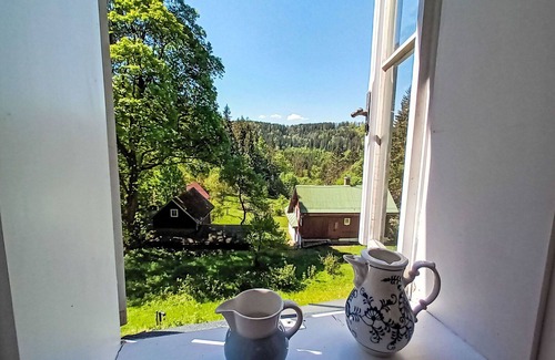 Desná 479 is a cozy, detached country house that has undergone renovations. It boasts two stories and a sunny position atop a hill, surrounded by wooded areas and the tranquil countryside. The property offers a yard, Internet Wi-Fi, and parking facilities. Enjoy alfresco dining with the provided garden furniture and embrace the warmth of a fireplace on chilly evenings. Inside, you'll find a sauna, washing machine, and tumble dryer for added convenience during your vacation rental stay.