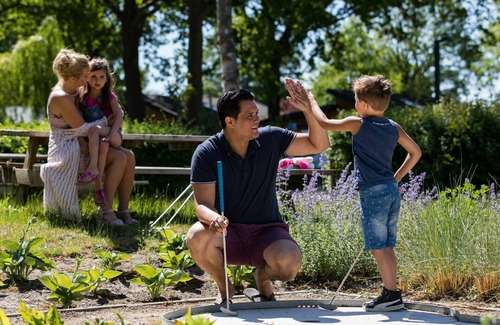 The resort is situated outside the town of Biddinghuizen, approximately 10 km from the center, and offers direct access to the beach on the lake. Outdoor recreational facilities include table tennis, basketball, a children's playground (slide, swing, sandbox), and a petting farm.