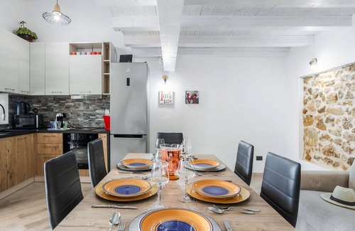 The villa boasts a covered outdoor kitchen equipped with four burners and a built-in barbecue. Additionally, there is a hot tub that can accommodate six people, with the option to heat the water. The property offers a magnificent panoramic view of the sea and the surrounding countryside. The covered outdoor kitchen and hot tub further enhance the vacation experience. Please note that the maximum capacity for this villa is six guests, with two bedrooms and two bathrooms available. The unique layout, amenities, and additional features make this villa an exceptional choice for your vacation.