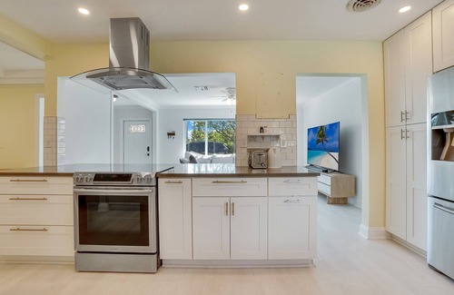 Welcome to this beautifully updated 3-bedroom, 2-bathroom home, where modern elegance meets the relaxed charm of South Florida living. Every detail has been thoughtfully designed to create a peaceful retreat that blends style, comfort, and convenience—perfect for families or groups seeking a laid-back luxury experience.
