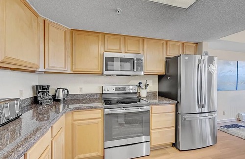 Enjoy stunning views from all bedrooms at this 4-bedroom condo in Frisco. This gorgeous property features 2 king bed master suites, 1 full bed, and 2 twin beds perfect for families or groups of friends. With 3 full bathrooms, guests will feel right at home. The living room offers additional space with a cozy sofa bed for extra comfort. We're happy to assist with any questions while you stay at our condo.