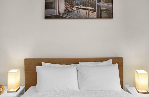 Unwind in the stylish 2-bedroom home in central Fairfax, with a grocery store and a cafe on-site and numerous shops and eateries within walking distance.