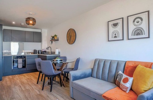 Stay in a stylish Liverpool City Centre apartment just minutes from the waterfront, Liverpool ONE and the iconic Cavern Club. With a bright open-plan living space, Juliette balcony, and fun extras like a retro games console, vinyl record player and classic board games, this modern apartment is perfect for couples, friends, families or business travellers. Whether you’re visiting for shopping, football at Anfield or Everton’s new stadium, or a city break, this is your home-from-home in Liverpool.