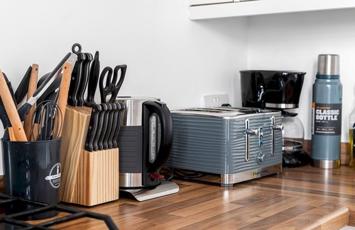 * Kitchen: Fully equipped kitchen with modern appliances, including oven, kettle, and all the essentials for home-cooked meals.