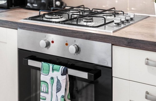 The living room is equipped with a spacious seating area, and a 50” Smart TV for your entertainment, already logged into a Netflix guest account. Additionally, we provide complimentary high-speed Wi-Fi, and all hotel-like amenities such as bed linen, towels, toiletries, tea and coffee.