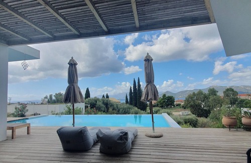 Stylish villa three bedrooms central location, private pool, sea & mountain view is located in Paleros. Stylish villa three bedrooms central location, private pool, sea & mountain view provides accommodation, featuring Ocean View, Wellness Facilities, View, among other amenities. This Villa features Ocean View, Wellness Facilities, View, to make your stay a comfortable one.