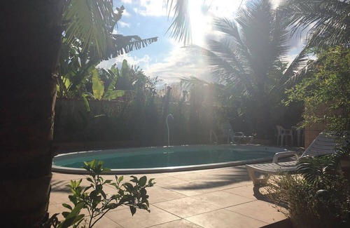 Stay in a suite in a guest house with a pool and barbecue, 4 minutes by car from Enseada beach, the best value for money in the region. With an excellent location, the centre of Caraguatatuba is only 14 km from the guest house. The room is located on the ground floor of a well-wooded guest house, with a pool and barbecue, for your enjoyment and moments of fellowship. Book your accommodation on the north coast of São Paulo today.