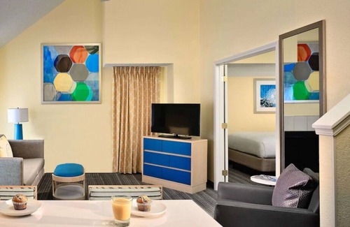 The pet-friendly hotel's spacious and contemporary guest rooms feature king or queen beds and a range of conveniences, including flat-screen televisions, free Wi-Fi, and a full kitchen equipped with a stovetop, microwave, dishwasher, and full-sized refrigerator and freezer. You can stock up on the essentials at the hotel's 24-hour minimart or cook a meal in the outdoor grill area. You'll also have the opportunity to make the most of the outdoor fitness facilities, including a sports court and seasonal pool. Free parking and grab-and-go breakfast are also provided.