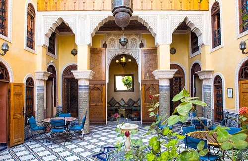The riad is ideally located in the medina of Fes, 50 metres from the main street, nearby Bab Boujloud the famous “blue gate”.Access is very easy, withsecure parkingat the foot of the riad.