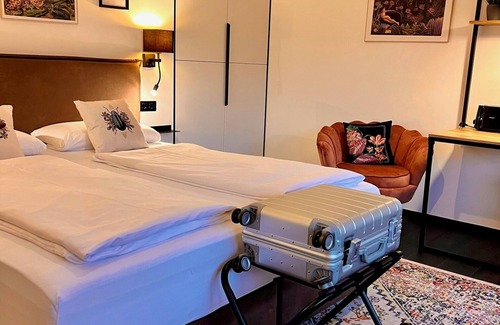 Die exklusive Themensuite „Gentleman“ bekam diesen Namen, da Herr Roser ein Mann von der alten Schule mit Charme und Etikette war. Er wusste zu genießen, ob bei einem guten Tropfen Whiskey oder einer guten Zigarre. Gute Gespräche mit Freunden oder Geschäftspartnern gehörten dazu. Die exklusive Themensuite befindet sich in einem denkmalgeschützten Fachwerkhaus aus dem Jahre 1789 und wurde 2018-19 kernsaniert und hochwertig ausgestattet. Die Suite verfügt über eine Ausstattung im britischen Stil und einige liebevolle Details zum Thema. Es gibt ein separates Schlafzimmer mit einem Boxspringbett (180x200cm). Im Wohnbereich steht ein hochwertiges Chesterfield-Bettsofa mit 160x185cm Liegefläche für zwei weitere Personen bereit. Zur Ausstattung gehören zudem: schnelles WLAN, großes Smart-TV-Gerät, Regendusche, Schallschutz, Rauchmelder und Klimaanlage. Die Einbauküche ist mit Mikrowelle, Backofen, Induktionskochfeld, Geschirrspülmaschine, Kühlgefrierschrank, Dunstabzug und Senseo Kaffeemaschine ausgestattet. Tiefgaragenplätze sind gegen Gebühr buchbar. Abgeschlossener Fahrradstellplatz.