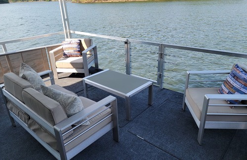 Jump right off the back of the boat into beautiful Lake Ouachita with a built-in ladder off the rear deck to get back on the boat easily.