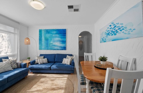 Welcome – Your dreamy riverside retreat, where sun, sea, lifestyle and serenity come together. Situated beside the scenic Patawalonga River, just moments from the beach, opposite the Haven Marina and night lights of the spectacular Kings Bridge, this breezy 2-bedroom, 1-bathroom haven, is just a short stroll from the beach shores, offering a laid-back ambience perfect for savouring seaside living.