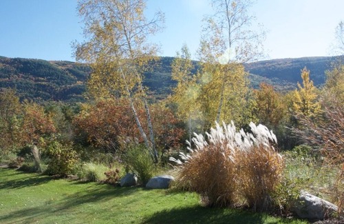 Fully furnished with antiques and top-of-the line new furniture. Master BR with king-sized bed and large ensuite bathroom with glass-walled shower; two more spacious bedrooms, each with queen-sized bed; and one bedroom with twin bed. All BRs are on second floor. The three smaller BRs share a full bath. Propane fireplace; air conditioning; heating system. Expansive lawns and colorful gardens. Large deck with magical views of mountains and meadows; propane grill, outdoor glass-topped table with eight chairs, four easy chairs, and coffee tables.. Open floor plan with views and southern light in every room: fully equipped cook's kitchen overlooking dining room, which flows into living room, which opens into sunroom with 55" television, couch, and two marvelous easy chairs. 1st floor lavatory. Wi-fi. Outdoor hot and cold shower. Built 1991; renovated 2012. 2500 square feet. Towels, linens included.