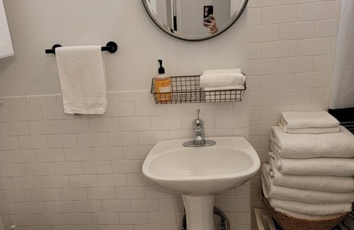 BATHROOM: My bathroom, though not brand new, is in good condition & very clean. I leave a hairdryer for my guests plus shampoo, conditioner & body wash. I know most are flying to NYC and, with baggage fees, luggage space is precious.