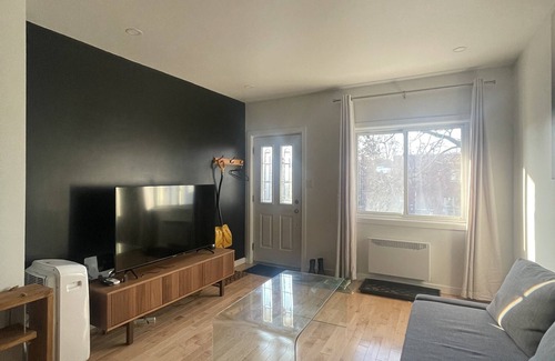 Pack only your suitcases for an enriching stay in the heart of Villeray neighborhood in Montreal and welcome to this charming apartment in Villeray! This bigger open and clean apartment is ideal for a single person, a couple, or even a small group (thanks to the sofa bed). This fully functional and renovated haven offers a fully equipped kitchen, a comfortable living room with cable TV and Wi-Fi, a clean bathroom, a sunny bedroom with storage, and a welcoming outdoor space to share. Not to mention a friendly host always ready to assist.