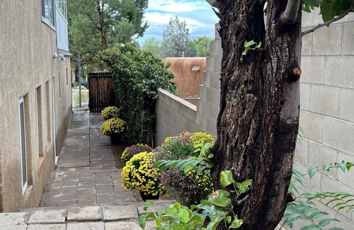 Enjoy a peaceful stay at this naturally lighted studio apartment in Albuquerque's North Gold Course area situated near University of New Mexico, hospitals, parks and a Whole foods Market. The space includes a comfortable living room with a queen bed and sofa bed, perfect for unwinding after a day of exploring. Guests can relax in the inviting atmosphere and take advantage the kitchenette for chilling wine or making a cup pour-over coffee. Experience the magic of Albuquerque at this brilliant location.