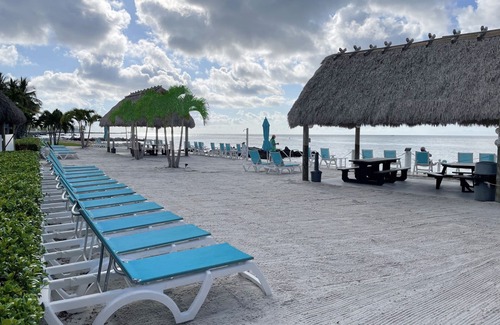 New renovation in Key Colony Beach oceanfront complex, with heated pool and private beach with amazing ocean views. Unit #5 is a studio condo featuring a brand new kitchen with gorgeous granite countertops, stocked with everything needed to cook a complete meal (stove, oven, toaster, microwave, blender, fridge, etc). Relax on our private beach and enjoy Sunset Park right next door. Beach with lounge chairs, patio tables, tiki's and BBQ grills for guest use. Impeccably clean and sanitized
