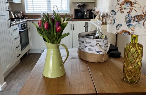 Lovely soft furnishings await you at the chalet with all the beachside equipment you would want in the shed.
