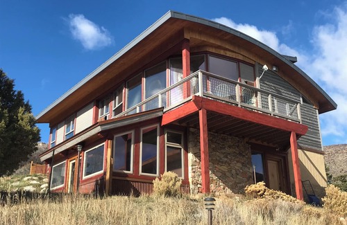 This modern eco-house in Old Snowmass has soaring views of the Elk Mountain Range, Snowmass ski resort and the valley below. It is 16 miles to Aspen and Snowmass Village and 5 miles to Basalt. The home accommodates 8 guests, with four bedrooms plus 3 sofa beds. The upstairs has a barrel vaulted great space with a gourmet kitchen and a wall of glass adjoining the dining area, overlooking the mountains to the south. Downstairs has a cozy family room with a large TV and a table for board games. Off the family room is a sunny office or yoga room. We provide eco-friendly/organic toiletries and we stock the kitchen with organic coffee, tea, spices, cooking oils, etc. We have a wardrobe full of board games and shelves full of books to enjoy during your stay! The home is in a quiet residential neighborhood adjoining BLM space with hiking trails. You can regularly see rainbows from the deck in the summer, and at night, the milky way blazing across the sky.