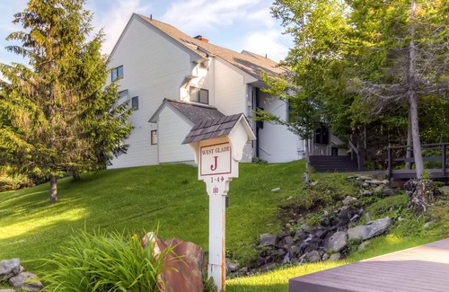 Cozy yet roomy, this ground floor rental boasts a fully equipped kitchen with upgraded appliances, a rustic living area complete with a fireplace and flat-screen television, and an outdoor deck. Whatever the season, enjoy the view from the windows out to the deck as you cook up a fantastic dinner after a long day of skiing, or a picnic lunch to bring along for your summertime adventure. The fireplace is perfect to sit around on a chilly night, and as an added perk, firewood is available for your use!