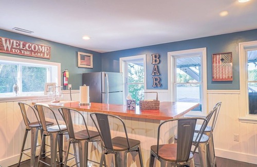 This home is tastefully decorated with French Country decor with a modern twist. A fantastic year-round vacation home on three levels with many windows offering picturesque views and great access to the waterfront. This home features two living rooms and a dock that accommodates two boats. This home offers a peaceful environment on the East side of the lake, letting you enjoy your private getaway. For your comfort, we provide luxurious linens (including beach towels) and paper products.