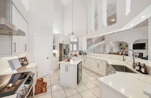 A living room, a dining area, a BBQ grill, and air conditioning are featured at this 6-bedroom, 6.5-bathroom rental. Bathroom amenities include a hair dryer, a bidet, and towels. The kitchen is equipped with an oven, a stovetop, and a refrigerator, as well as a coffee maker, an electric kettle, and an ice maker. And you can even pack a bit lighter because there's a washer and dryer.
