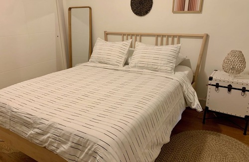 On a tree lined block and just a 5 minute walk from the L train at Halsey St. or Wilson Ave sits this luxury garden apartment. The private apartment is an entire floor of a 3 story building. It features a secluded covered patio, washer and dryer, central air conditioning and heat, simpli safe security system, gas weber grill, private entrance, flat screen TVs with cable and netflix, marble counters, everything you need to cook, high quality linens and towels, new stainless appliances, and comfortable new furnishings throughout. The apartment on Eldert is a great home base for your stay in Brooklyn!