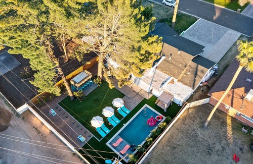 The Tropicana Cabana is the ultimate tropical-themed destination for your large group vacay! GREAT for family trips, girls trips, birthday parties & more! SO close to lots of food (incl. boozy brunch), bars, hiking & shopping in the popular Biltmore district! ONLY 4 miles to Old Town Scottsdale! Each room is playfully themed & we have large custom murals ("Vacay Vibes" in backyard & "Phoenix" out front!). Heated pool, outdoor daybed, custom tiki bar with tiki torch bluetooth speakers & home gym!