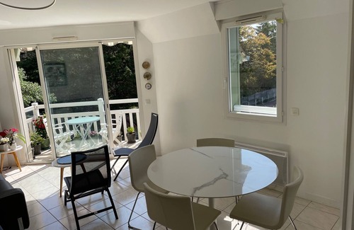 Nestled in Tourgeville, this 2-bedroom, 1-bathroom apartment brings it all within your reach. Fans of nature and the outdoors will love being 1 minutes by foot from Deauville Beach and 13 minutes from Garenne Beach. Promenade des Planches is within an easy 7-minute walk and Deauville Olympic Pool is also a quick 12-minute walk away, so leave your car at the property, which offers onsite parking.
