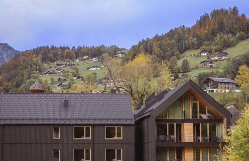 Schruns: Luxurious resort "Montafon Suites by AlpsResort". In the centre of Schruns, 100 m from the skiing area. For shared use: swimming pool heated (seasonal availability: 01.Jan. - 31.Dec.). In the complex: sauna, steam room (all included), relaxation room, spa area, storage room for bicycles, storage room for skis, central heating system. Parking at the house, communal covered parking. E-charging station. Supermarket 450 m, bus stop "Schruns" 450 m, railway station "Schruns" 450 m, outdoor swimming pool 1300 km. Golf course (9 hole) 3.3 km, skisport facilities 100 m. Nearby attractions: Alpenbad Montafon 1.3 km. Well-known ski regions can easily be reached: Skilift Hochjoch/Silvretta Montafon 100 m. Well-known lakes can easily be reached: Bodensee 50 km. Hiking paths: Silvrettahochalpenstrasse, Bielerhöhe. The photo is just an example.