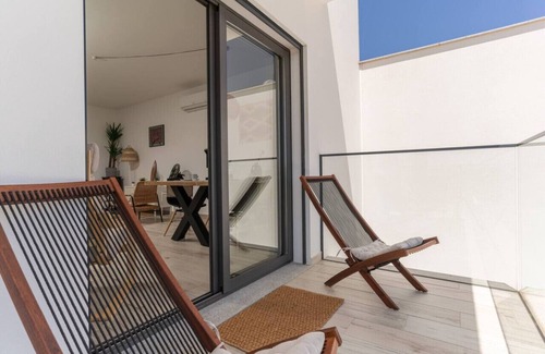 If you are looking for a bright, brand new beach apartment on Portugal's West coast, look no further. Our two-bedroom Surf & Beach Apartment in Monte Clerigo, Aljezur, is newly built and located on the top floor (2nd), offering amazing views. Enjoy your afternoon glass of wine while watching the sunset over the green landscape and ocean.