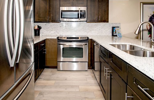New flooring, remodeled kitchens and bathrooms with brand new appliances, new 60” HD flat screen TVs in the living room with added HD channels, and new windows and doors which reduces exterior noise.